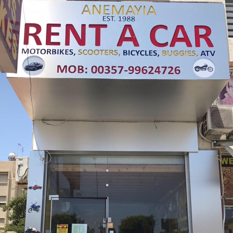 Anemayia is a family owned car hire company in Larnaca, established since 1988. Our shop is located in the center of Larnaca near the police station and Central post office behind Finikoutes promenade.